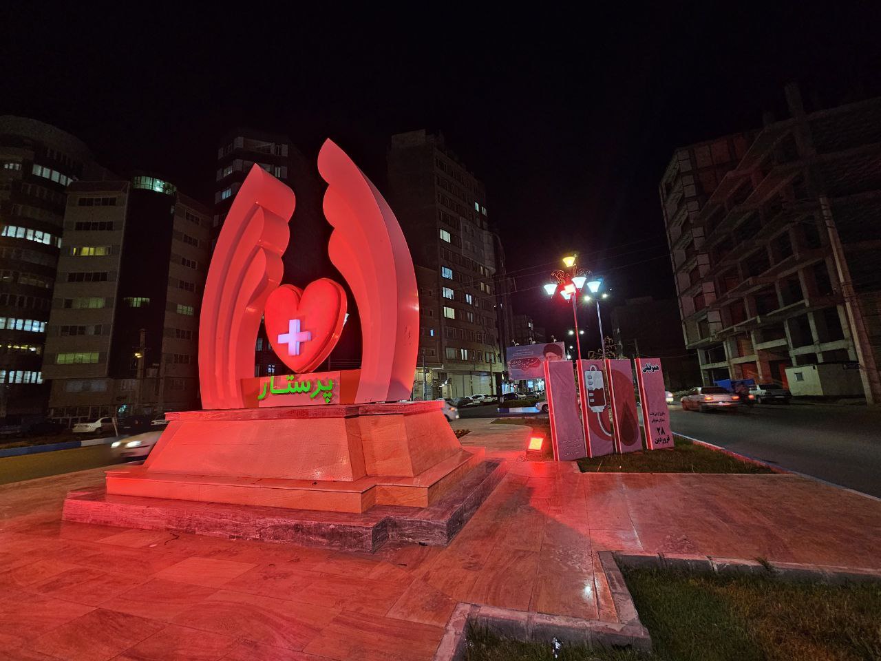 این اقدام که یاد آور ضرورت حمایت همه جانبه از بیماران هموفیلی و کمک همه مراکز درمانی و تشخیصی به شناسایی این بیماران هست بمناسبت ۲۸ فروردین ماه(۱۷ آوریل) هم زمان با دیگر شهرهای کشور در میدان پرستار و بر روی اِلمان پرستار این میدان انجام شد.