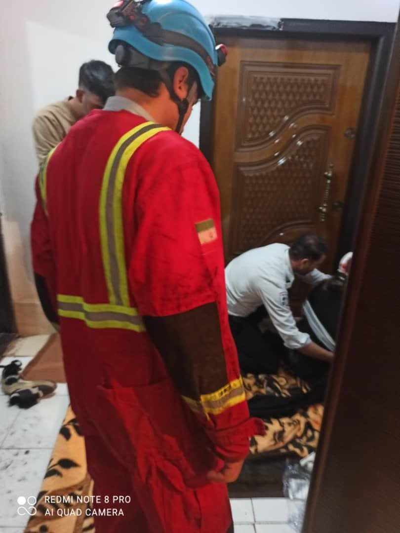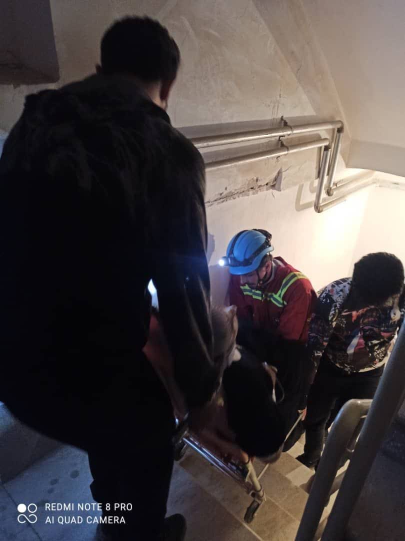 فرد مصدوم از طبقه ششم به روی کابین آسانسور در طبقه چهارم سقوط کرده بود که بعد رهاسازی جهت انتقال به مراکز درمانی تحویل نیروهای محترم اورژانس گردید.