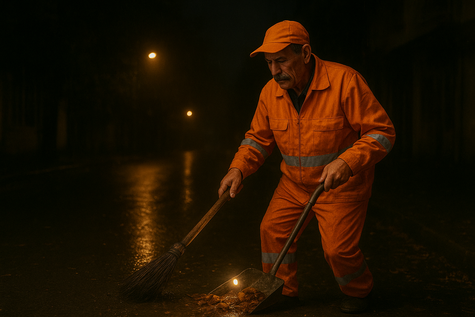 کسی که شاید در سرمای سحر، با دست‌های یخ‌زده و کفش‌های خیس، فقط به یک چیز فکر کرده: این شهر باید تمیز بماند.