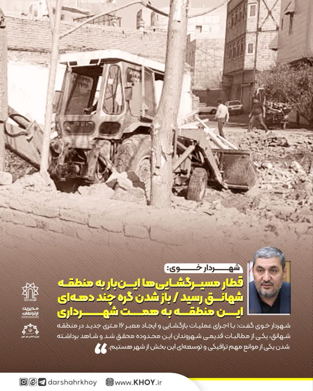 شهردار خوی همچنین با بیان اینکه ۱۶ متری شهید نوری در پشت مسجد سرهنگ واقع شده است، تصریح کرد: با ایجاد این معبر جدید، حجم ترافیک در کوچه پس کوچههای شهانق کاهش چشمگیری خواهد داشت و مسیر دسترسی شهروندان به مقصدهای اصلی با سرعت و سهولت بیشتری انجام میشود.