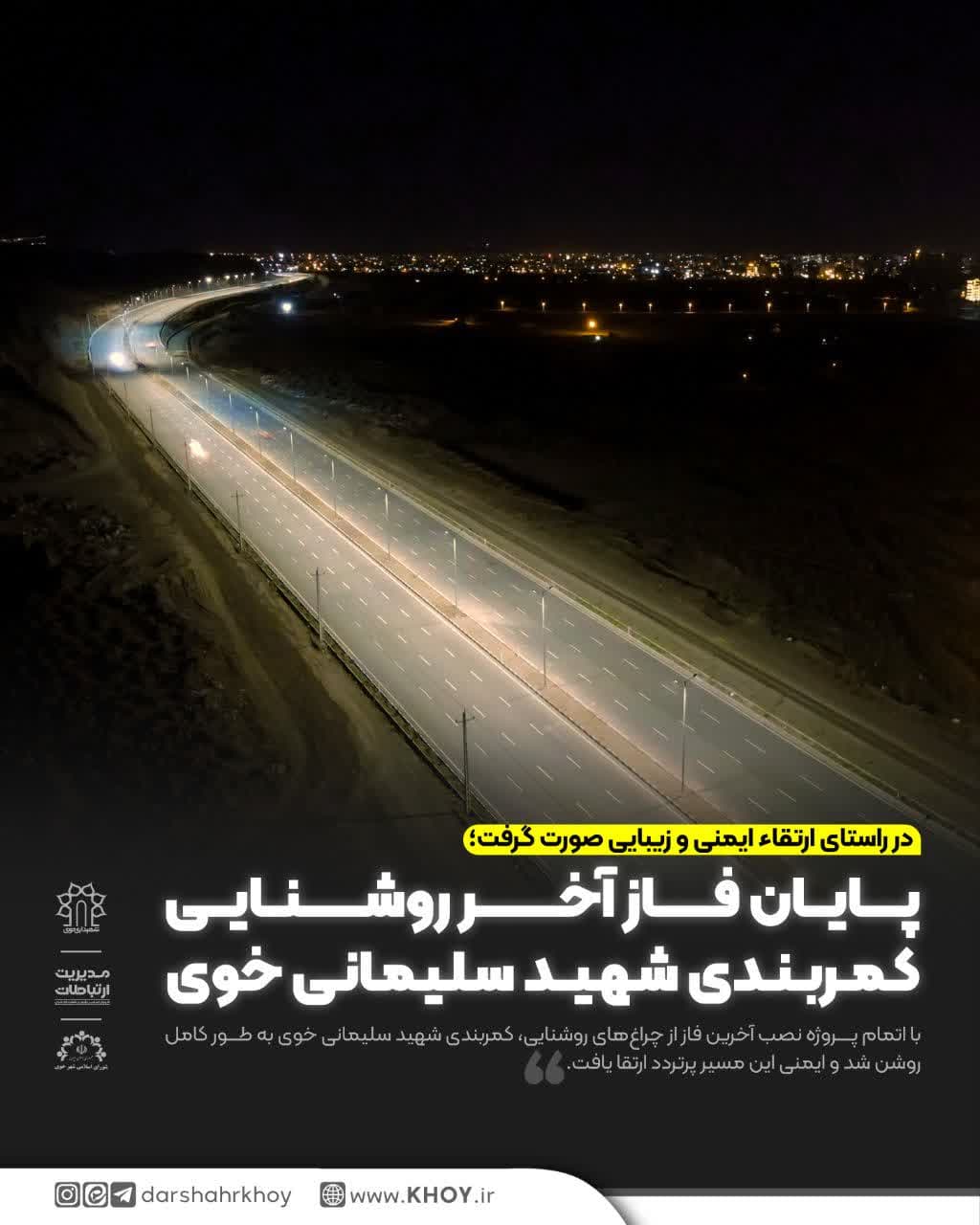 این پروژه که با همکاری شهرداری خوی و اداره برق شهرستان به انجام رسید، گامی مهم در راستای تأمین روشنایی و ارتقای ایمنی این مسیر پرتردد به شمار میرود.